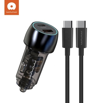 WUW sạc nhanh 60W PD sạc xe hơi cho điện thoại di động điện thoại thông minh QC3.0 qc4.0 kép 2 cổng USB Loại C OTP bảo vệ OTG
